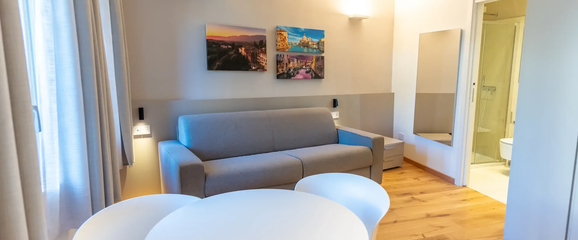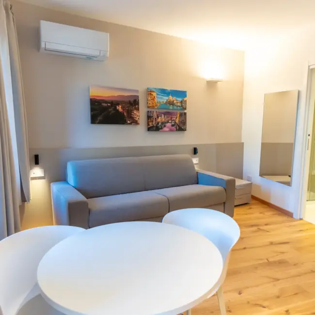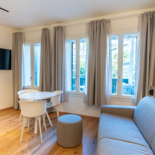 Ogni dettaglio dell’appartamento P. Bembo è pensato per offrire comfort e semplicità. Gli arredi essenziali, l’illuminazione discreta e la distribuzione intelligente degli spazi permettono di vivere l’appartamento con naturalezza. Un ambiente versatile, ideale sia per il relax che per chi viaggia per lavoro.