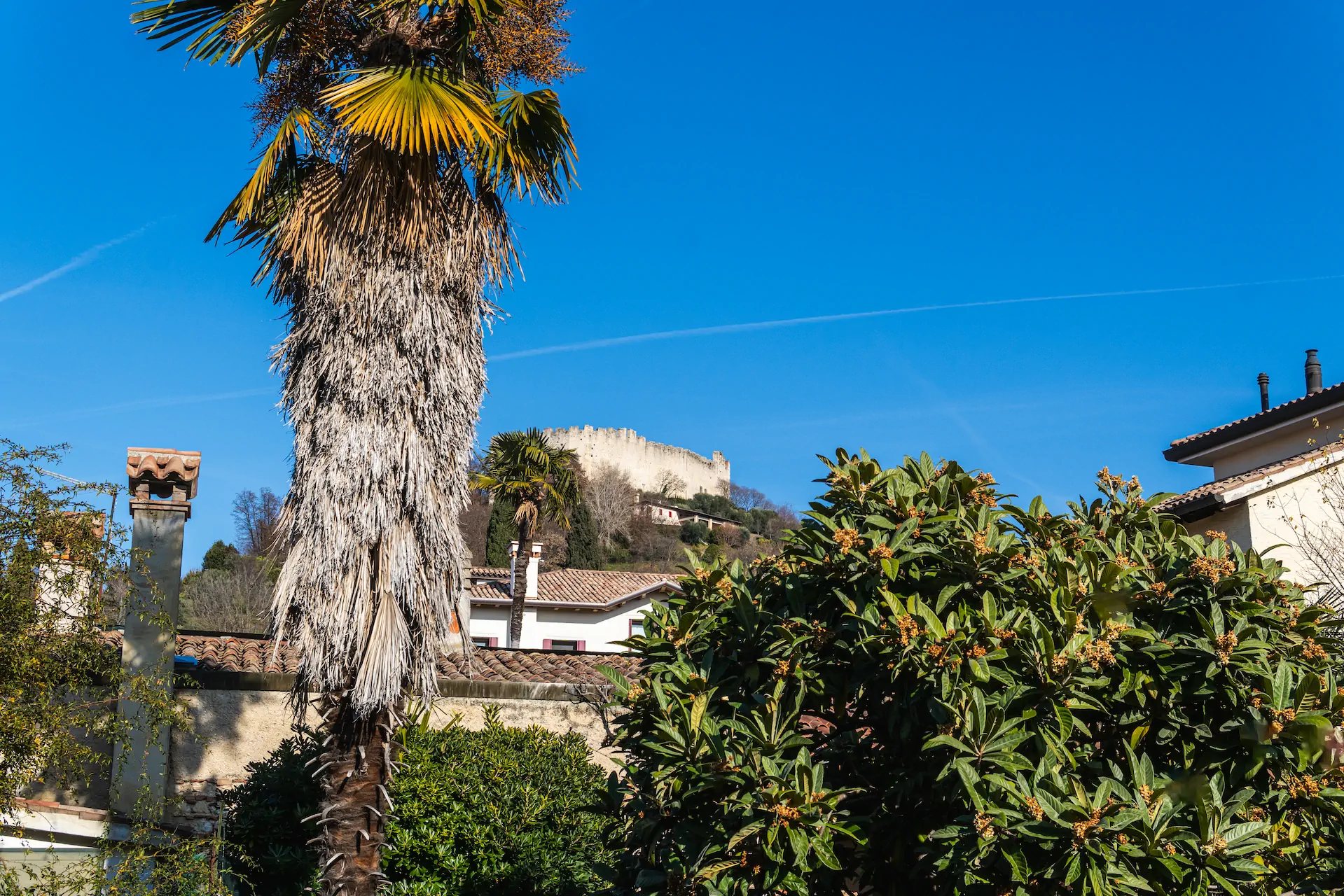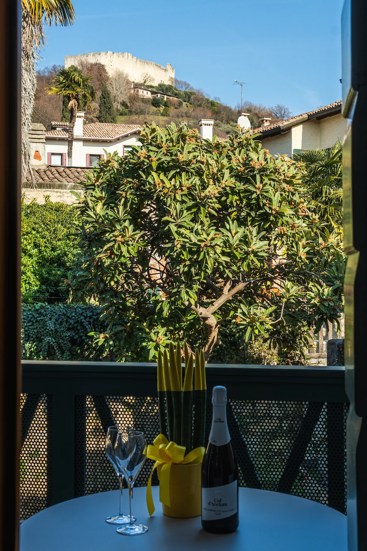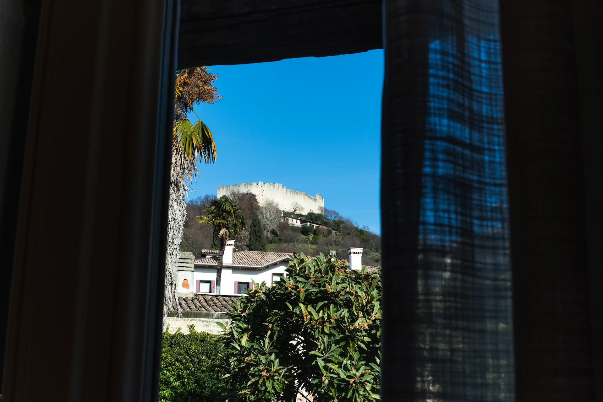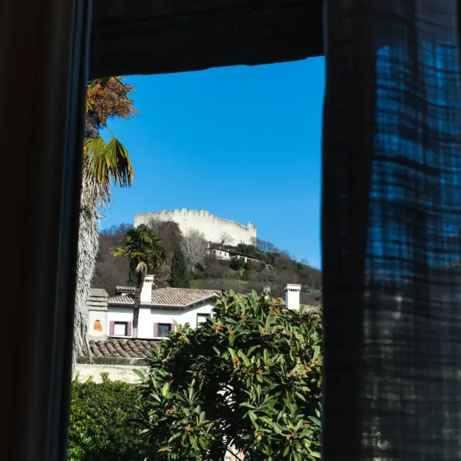 Dalle finestre dell’appartamento si percepisce il legame diretto con Asolo e il suo paesaggio. La vista verso il verde e la Rocca crea un dialogo continuo tra interno ed esterno, rafforzando la sensazione di trovarsi in un luogo autentico, dove storia, cultura e quotidianità convivono in equilibrio.